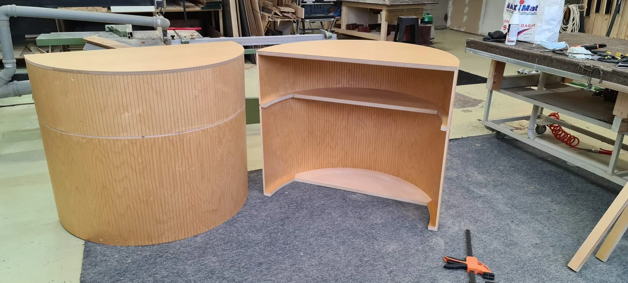 Vi samarbeidet tett med tre bedrifter underveis som jobber med å produsere fra ombruksmaterialer. Alle bedriftene ligger innen kort reisetid fra Slemmestad. Heartwood Norway ligger i Oslo, mens Asker Møbelsnekker & Metallsmie ligger i nærområdet, det samme gjør Daleløkken Arbeidssenter som er tilknyttet kommunen med opplegg for arbeidsrehabilitering.
